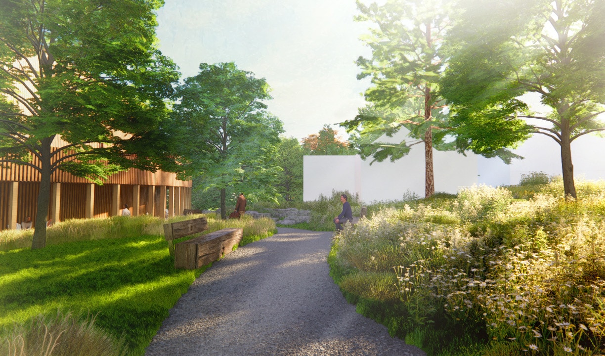 2148 Doris Duke Theatre on the Jacobs Pillow 2023 01 24 LA Rendering Meandering Path Rock Scramble