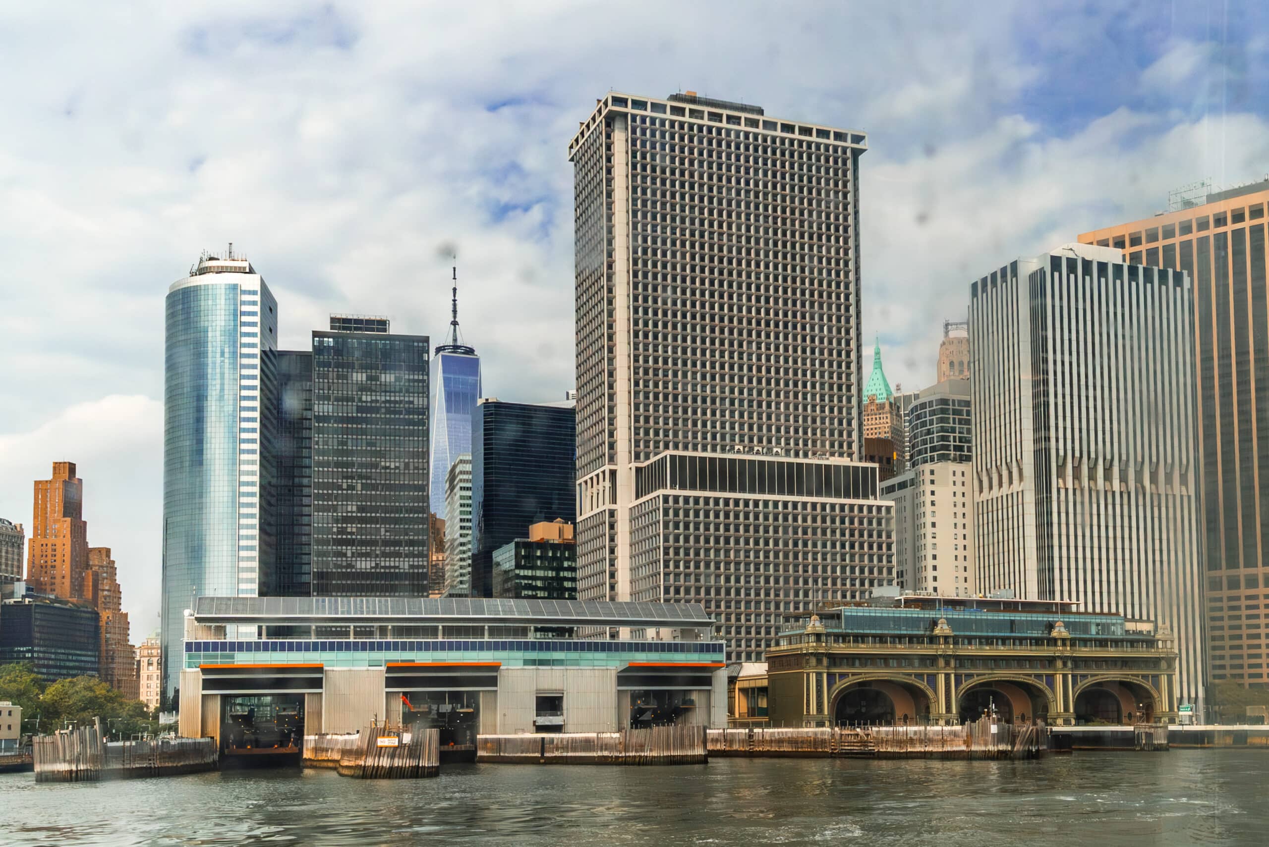 A view of the Battery Maritime Building and the current Whitehall Terminal from the East River.