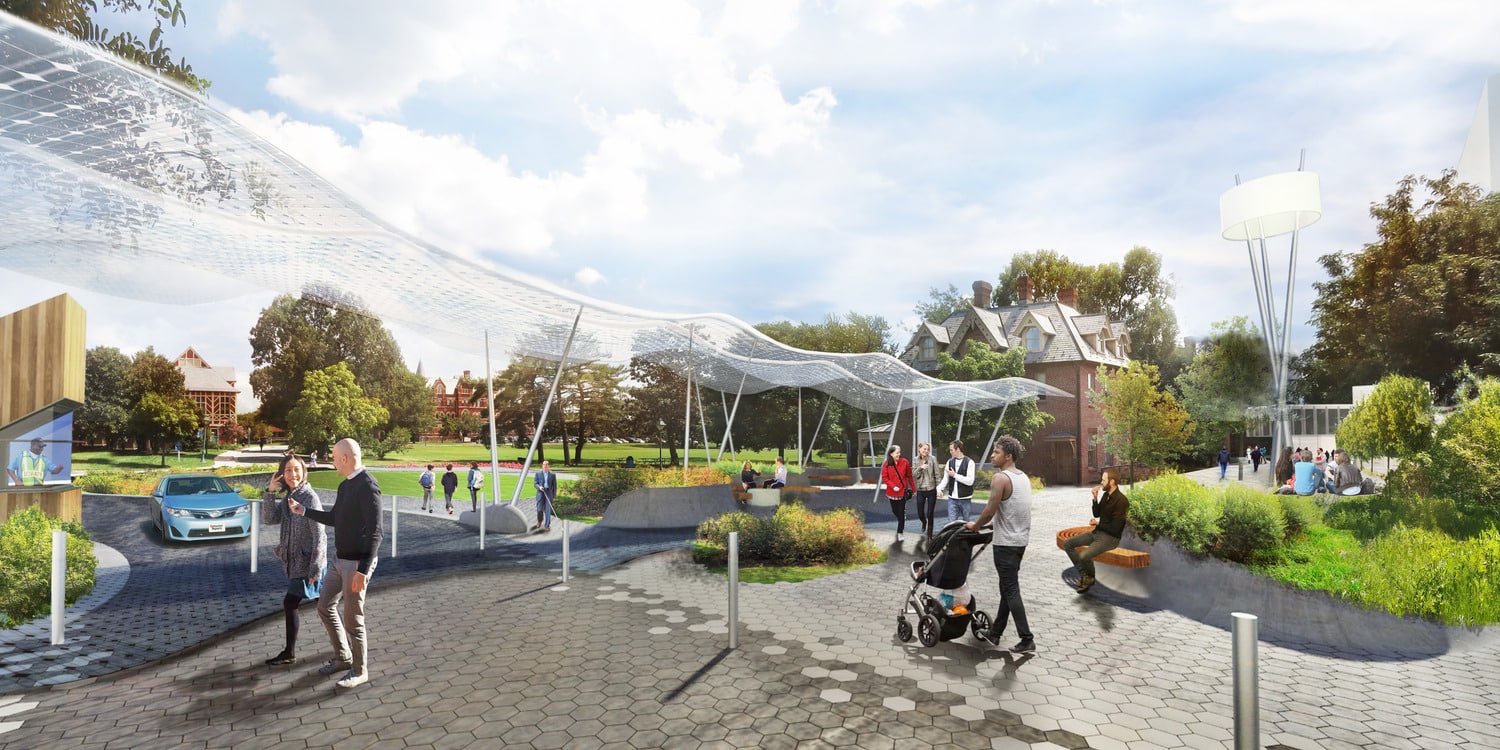 Gallaudet University, a premier institution for the deaf and hard of hearing, boasts a historic campus where American Sign Language is the primary language. Marvel's proposal, "Active Edge," enhances this identity by using DeafSpace principles to create areas that favor the deaf community and offer a unique perspective of the surroundings. Instead of a uniformly open campus, Marvel suggests a design that channels movement through major gateways, enriching the experience for both students and visitors. The Tapscott Plaza Gateway, featuring Serpentine Benches, becomes a communal spot where deaf and hearing individuals can interact, allowing visitors to engage with and appreciate the diverse sensory experiences of the Gallaudet community.