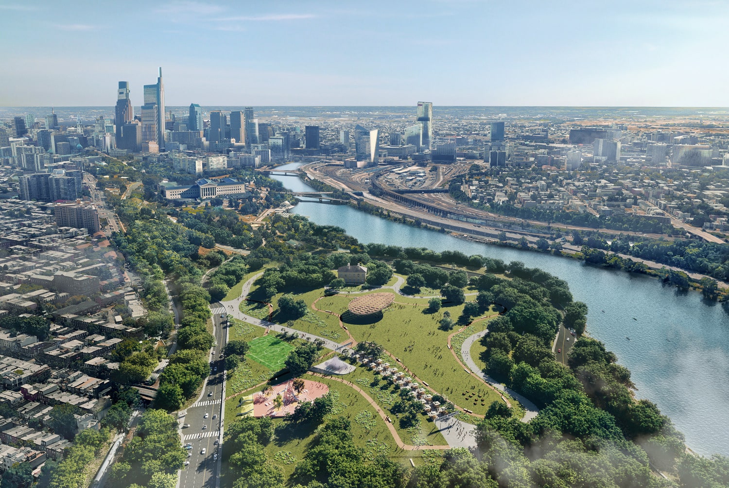 A Concept Plan shows an interwoven set of paths and new central features to create a hyper programmed and accessible public park worthy of its context along the Schuylkill River and adjacent to such incredible spaces as the Philadelphia Museum of Art, the Zoo, Fairmount Parks and City Center.