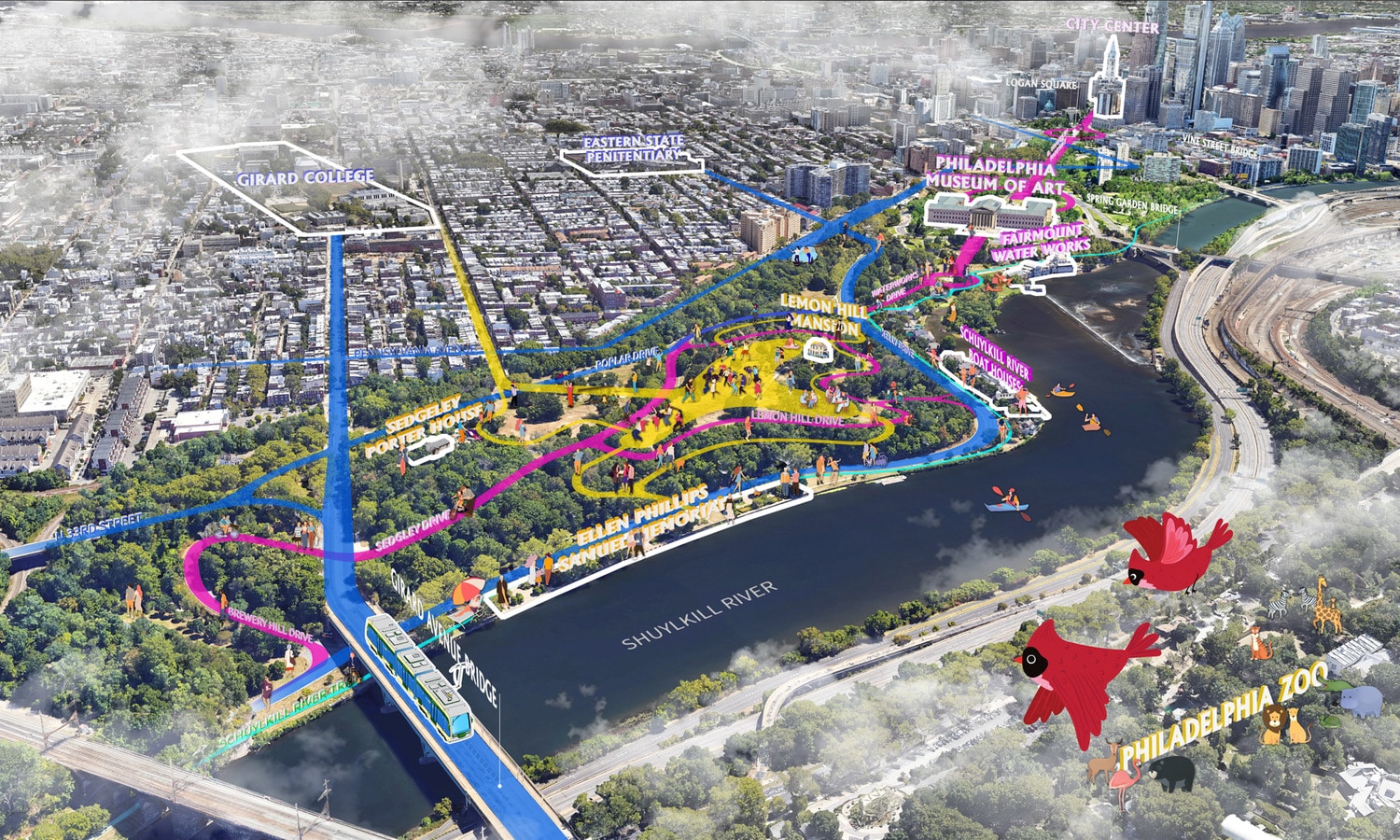 Currently a large and underutilized urban park, Lemon Hill will rethink its roadways to better activate edges, welcome visitors, and design circulation to take advantage of sitelines and viewsheds.
