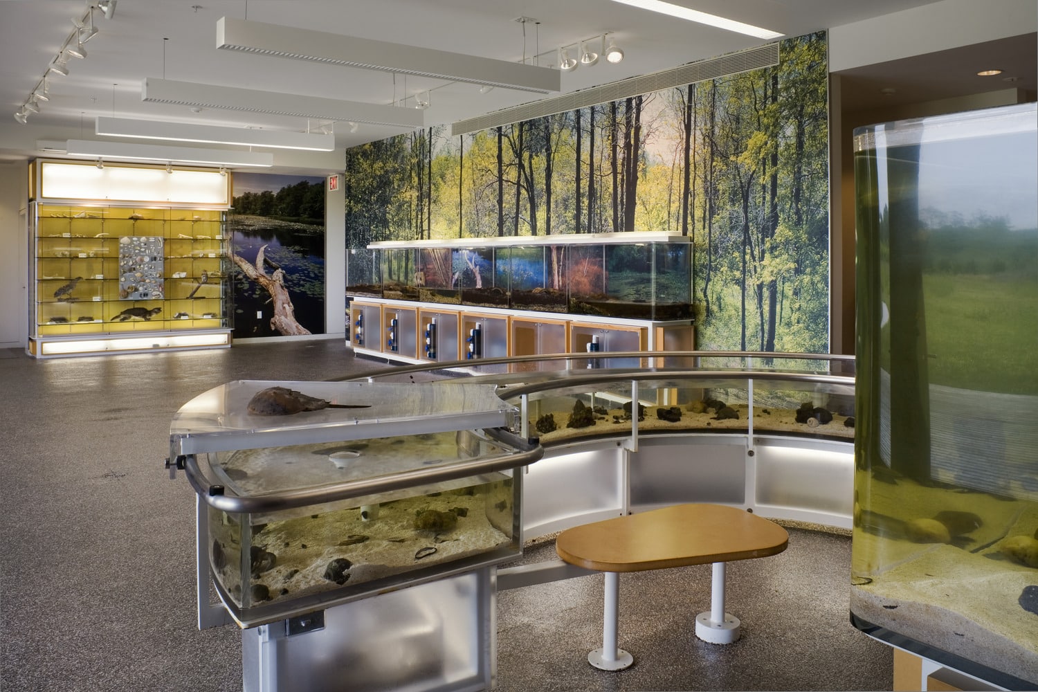 This 18,500 square foot natural history museum serves as the trailhead for a system of preserved lands known as the Long Pond Greenbelt. An open meadow containing wetlands, ponds, wild grasses, and a variety of animal life comprise the majority of the site, with scattered man-made berms and agricultural trails throughout.
